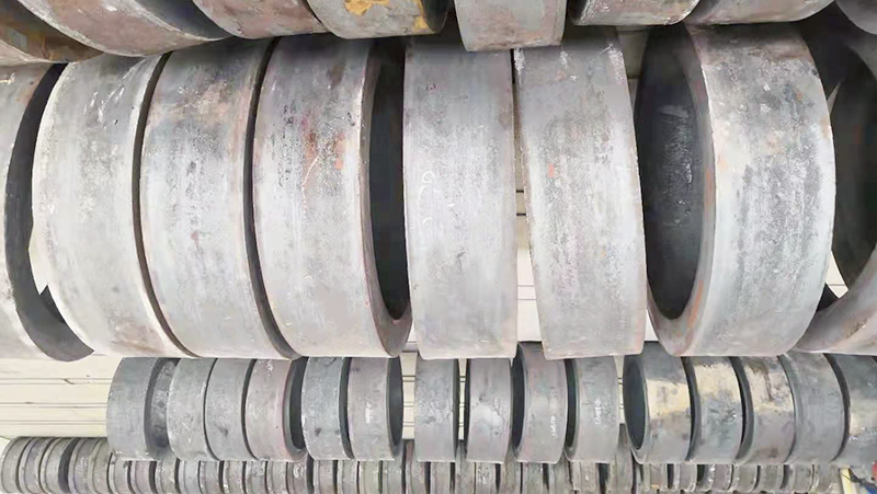●锻造过程开始先将原材料切割成差不多大小,然后投放到锻打盘中成形。